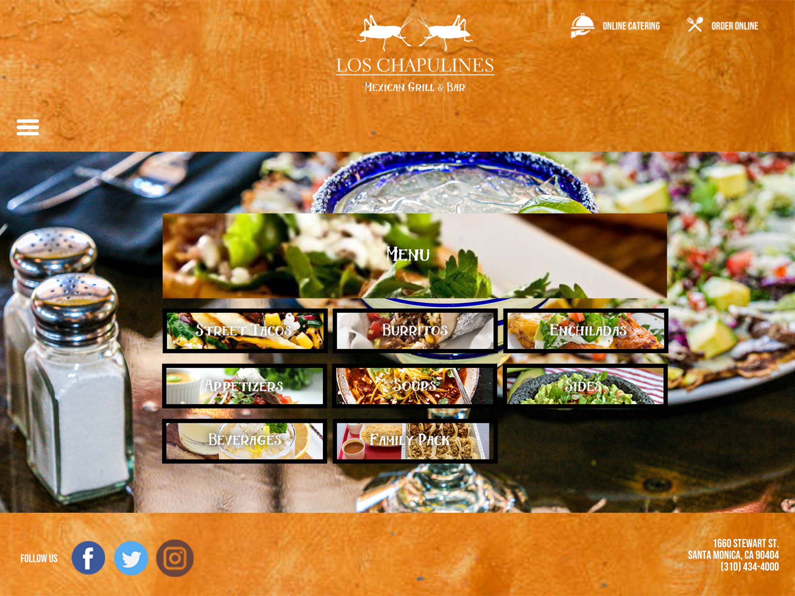 "landing" page of the website, and one (1) set of design comprehensives for the menu food/drinks subpage.
