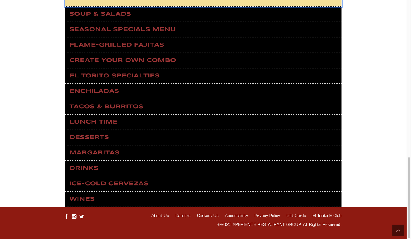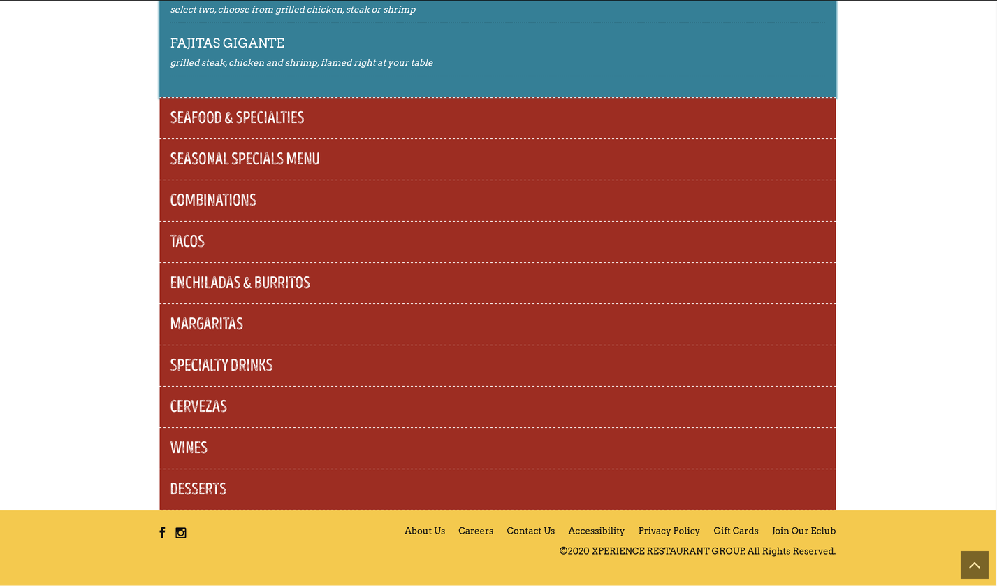 Navigating the web is easy, the primary navigation is at the top like every other page. The main and the sublevels are clean and concise since the hierarchy and color of the text and subtext is different. The main menu is found at the very top of the page. The restaurant logo creates a a barrier between the main menu. There aren't many main menu items, but there are two main menu options that repeat and are found in the middle of the page. By hovering on the page there's a difference between what's clickable and what's not, but most of the content is clickable. Also on this site search unfortunately isn't present.
