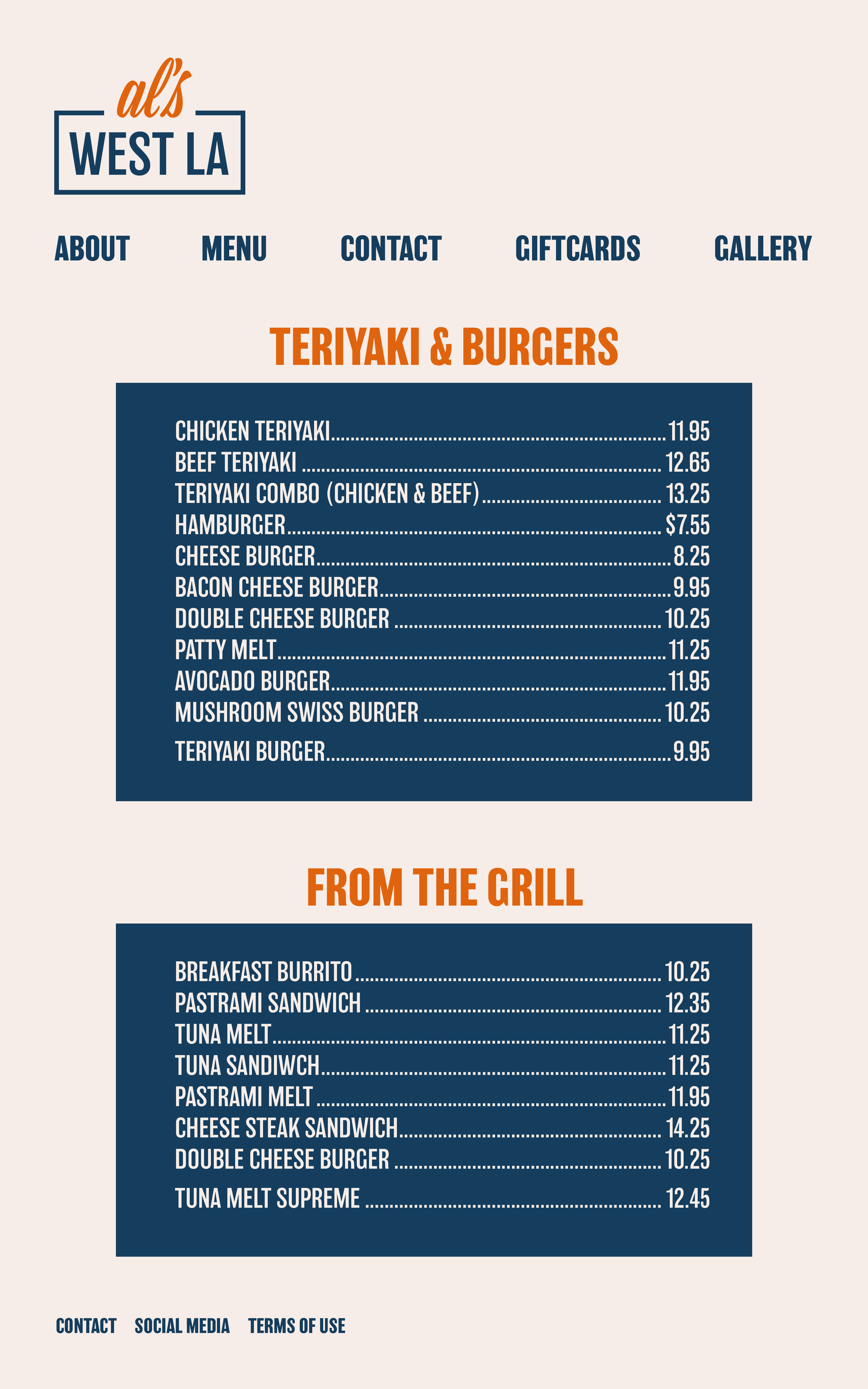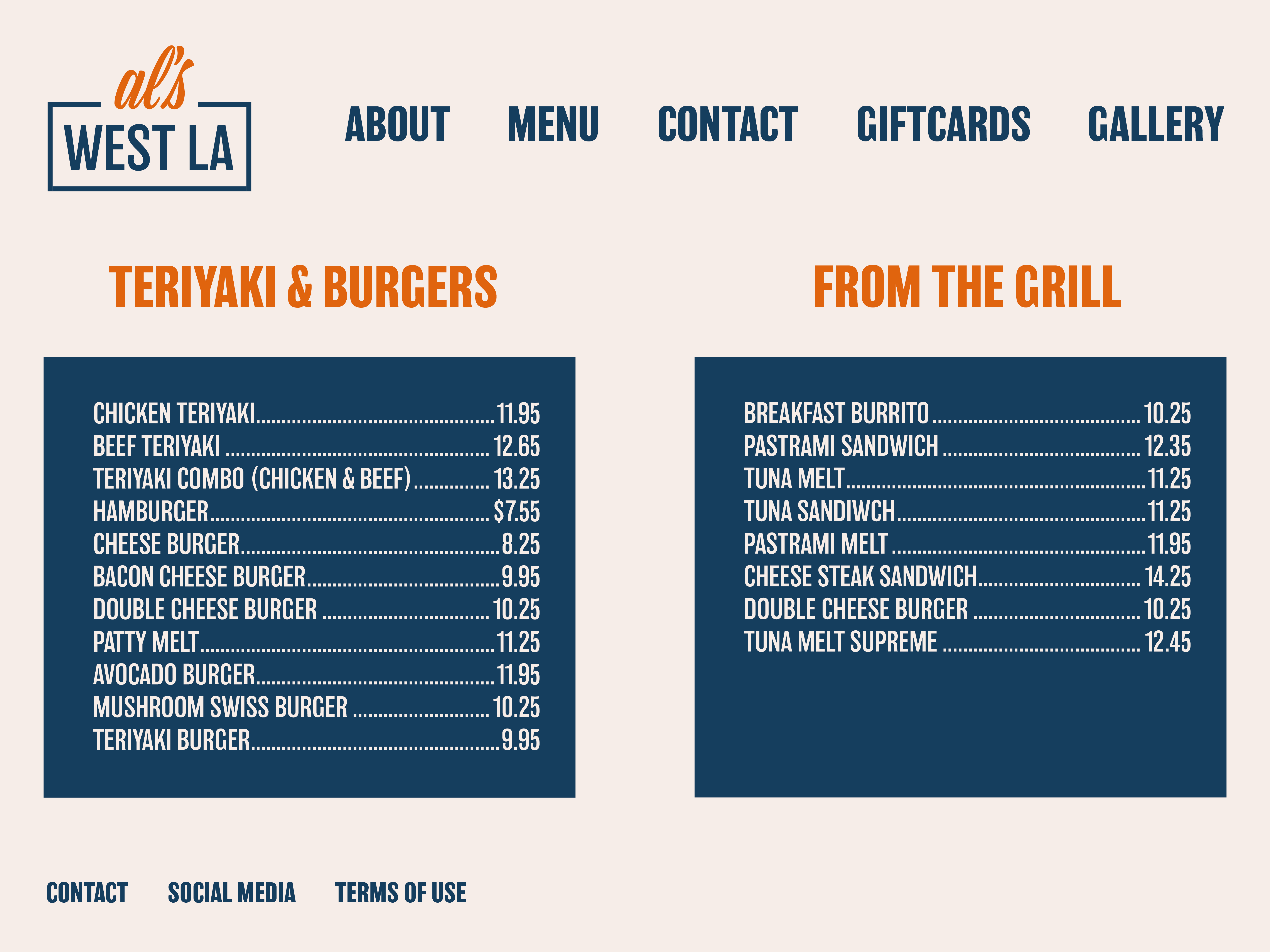 Menu subpage on laptop format